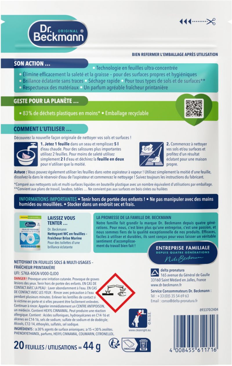 Détachant textile DR BECKMANN Feuille Magique sol & multi-usages Fraic (réf : 1237938)