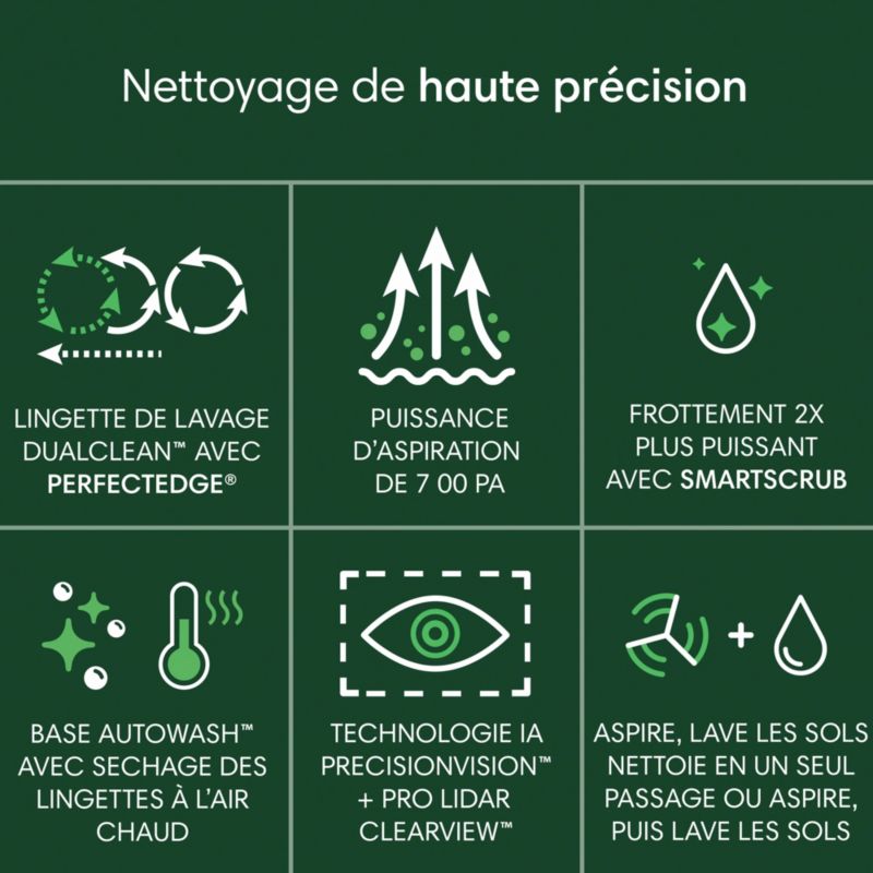 - Méthode de navigation : Cartographie 3D avec système de navigation personnalisable, zone spécifique à nettoyer, obstacles à éviter, trajectoire précise