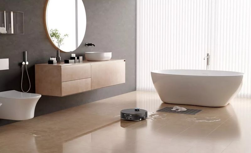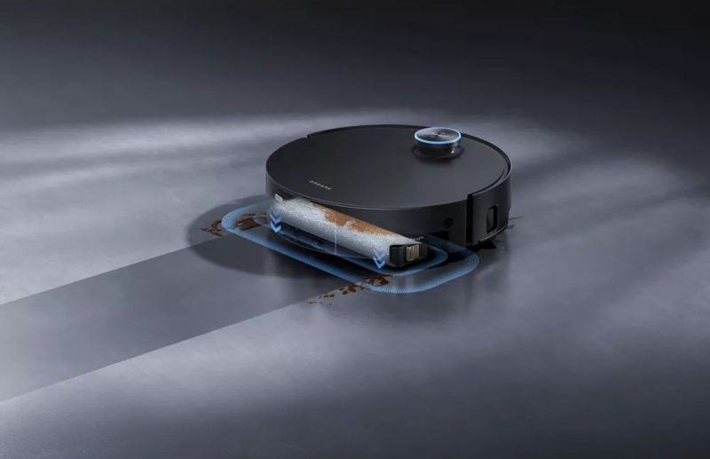 - Serpillère ou rouleau-brosse déportée : le robot est capable de nettoyer plus efficacement les angles et bords des murs en déployant sa serpillière ou son rouleau vers l'extérieur.