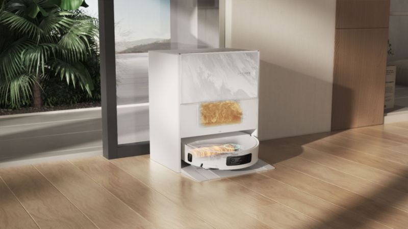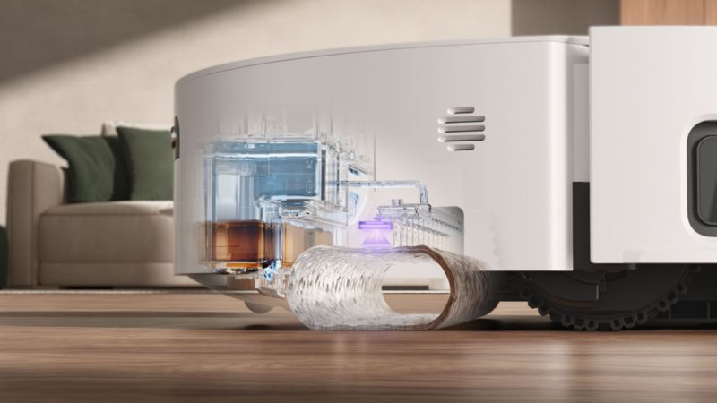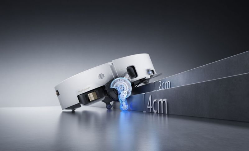 - Capteur LiDAR rétractable : le capteur LiDAR se rétracte dans le châssis du robot pour permettre à l'aspirateur de passer plus facilement sous le mobilier bas