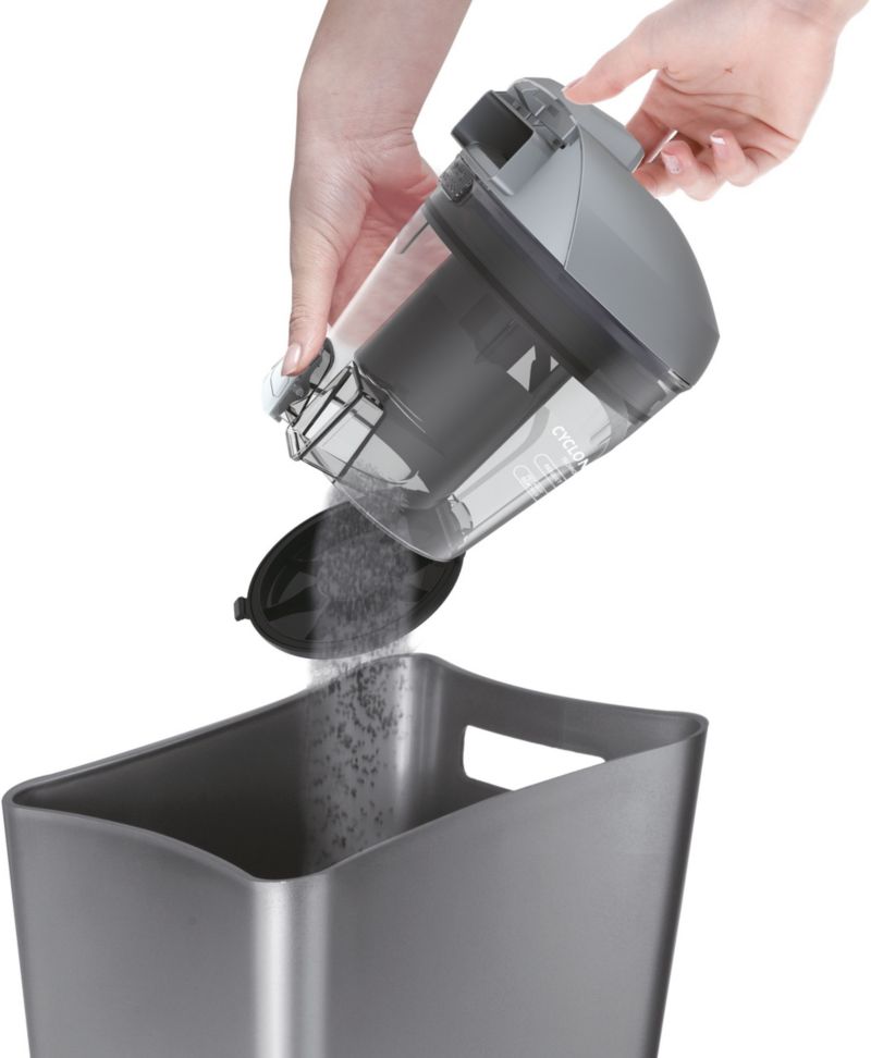 - Technologie d'aspiration : Cyclonique : utilise la force centrifuge pour séparer les poussières de l'air et les coller sur les parois pour retomber dans le bac. Elle offre une force d'aspiration constante pendant toute la durée du nettoyage