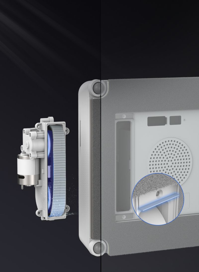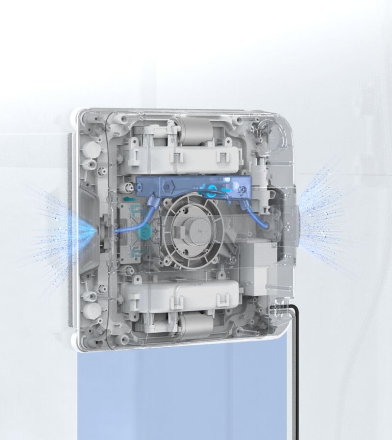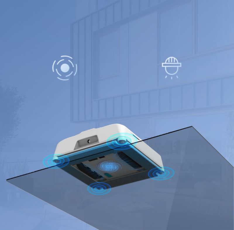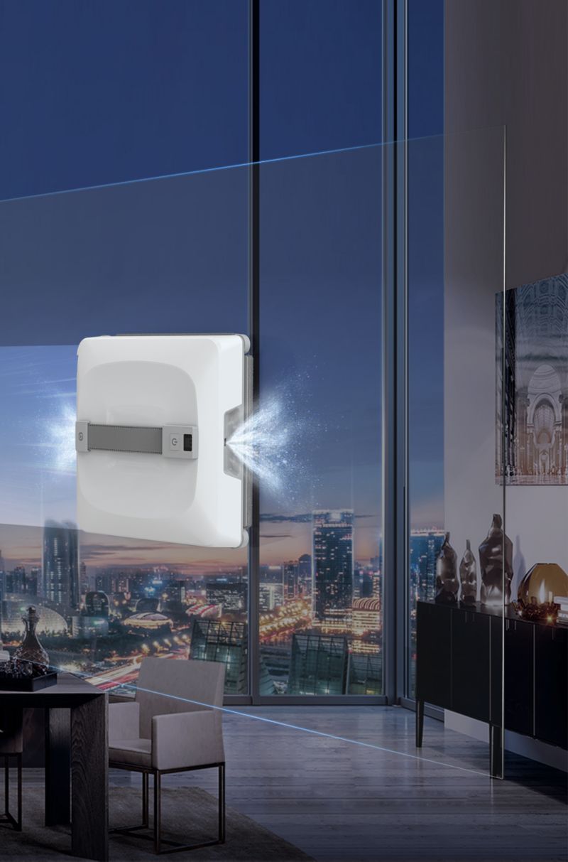 - Forme du robot : le robot carré est conçu pour atteindre les angles à 90° et les bords, assurant une couverture totale de la surface vitrée sans laisser de zones sales.