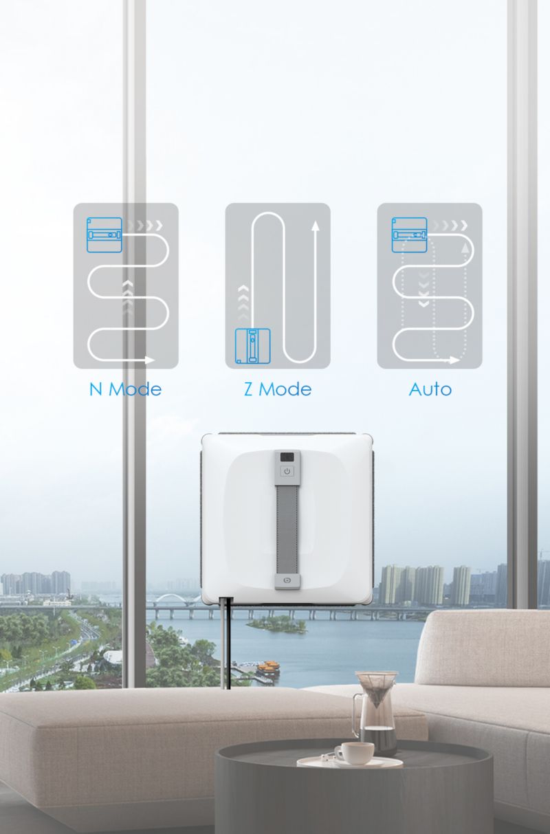 - Modes de nettoyage : Profond (1 passage horizontal et 1 passage vertical), Manuel (via appli ou télécommande), Mode auto en Z (de haut en bas), Mode auto en N (de bas en haut)