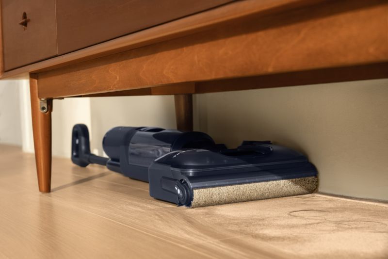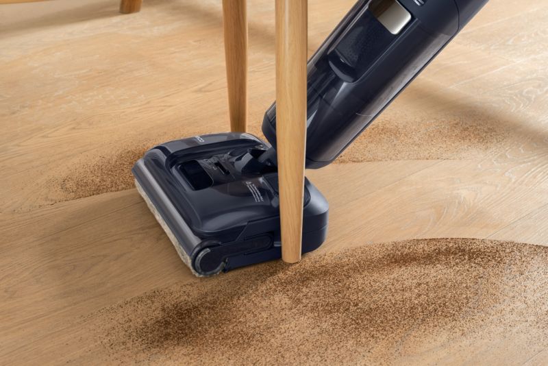 - Portée à plat : oui, l'aspirateur laveur s'incline entèrement à plat sur le sol pour se glisser sous les meubles/chaises (jusqu'à 12,5cm)