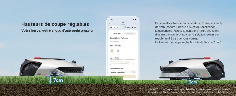 - Hauteur de coupe réglable : oui automatiquement avec l'application