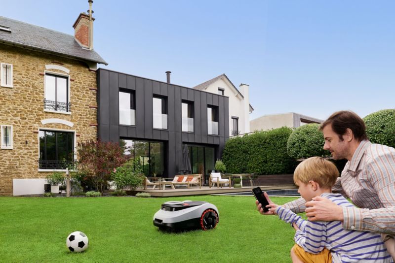 - Hivernage : durant cette période, il est conseillé de ranger le robot et sa station dans un endroit sec et à l'abri du gel. Chargez la batterie à 100% avant d'éteindre le robot