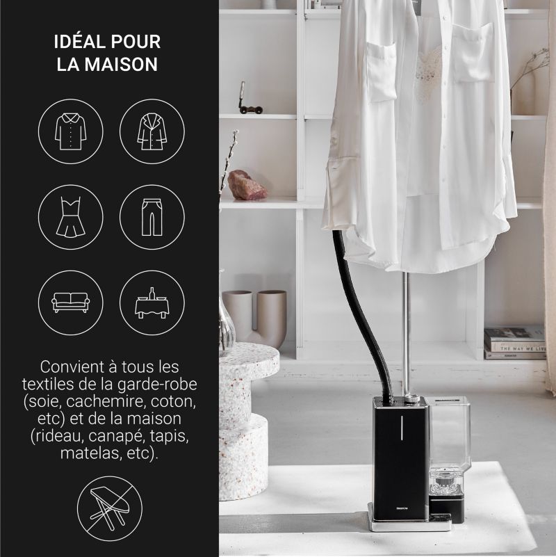 - Temps de chauffe : Avec le temps de chauffe réduit, le défroisseur vapeur vous permet de gagner du temps.