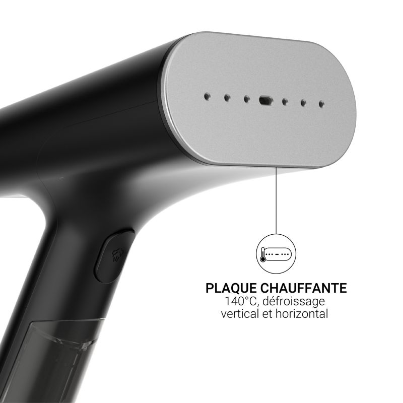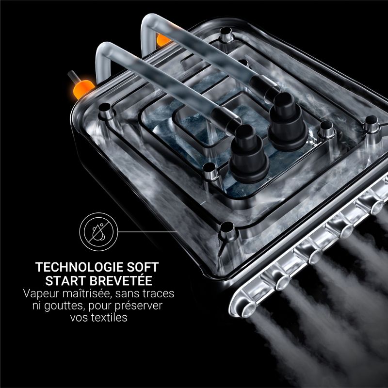 - Semelle défroisseur chauffante : oui, évite que de la condensation ne se dépose sur les vêtements et élimine les faux plis pour un défroissage plus rapide et efficace
