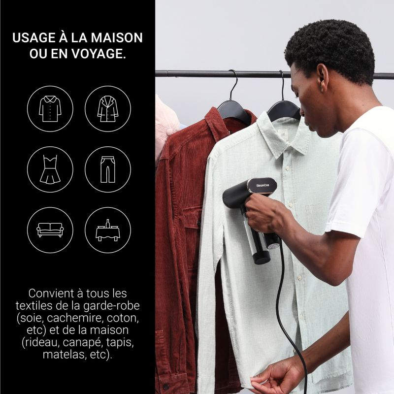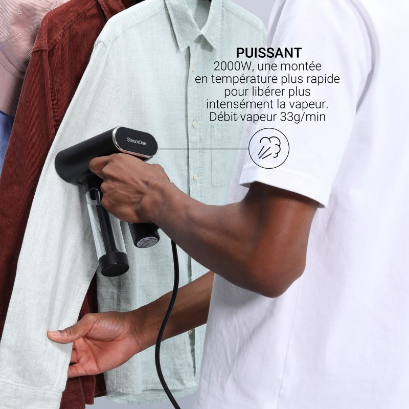 - Temps de chauffe : Avec le temps de chauffe réduit, le défroisseur vapeur vous permet de gagner du temps.