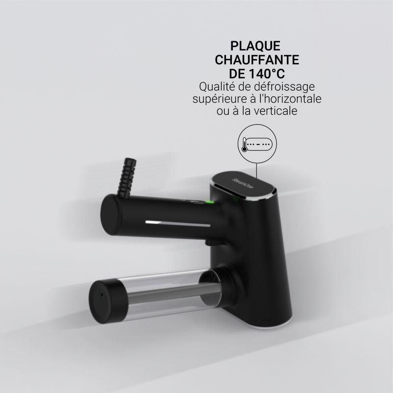 - Semelle défroisseur chauffante : oui, évite que de la condensation ne se dépose sur les vêtements et élimine les faux plis pour un défroissage plus rapide et efficace