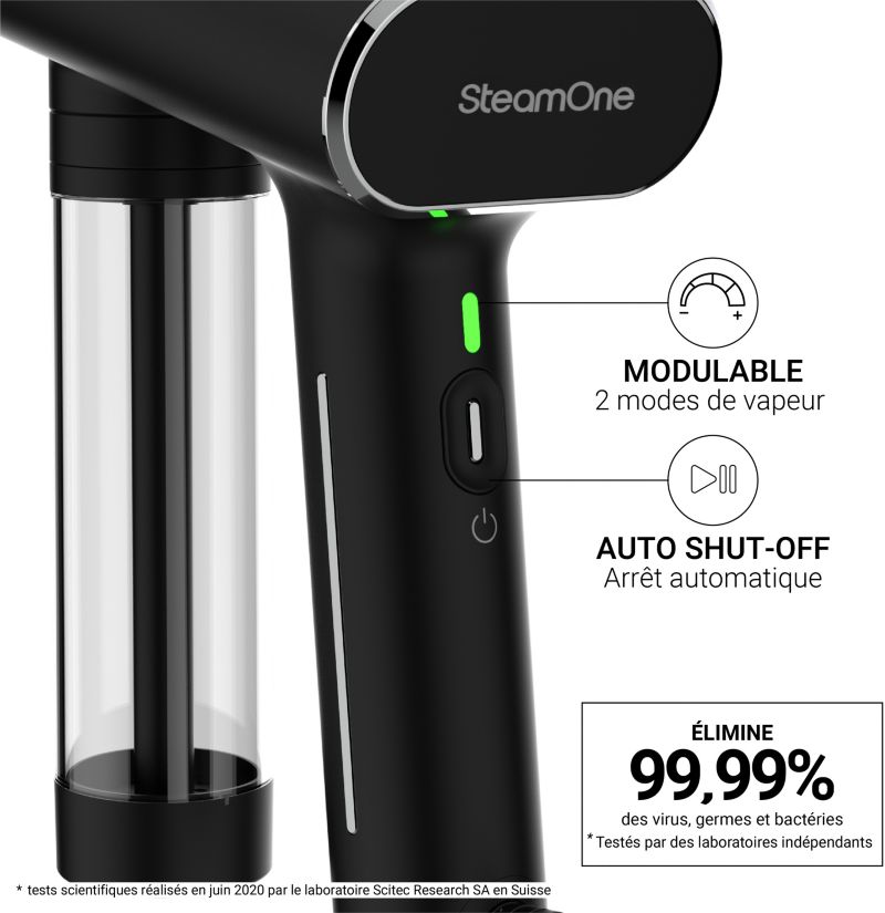 Le + : Assainissement par la vapeur à 98°C. Éliminez 99% des microbes SANS brûler les tissus !
