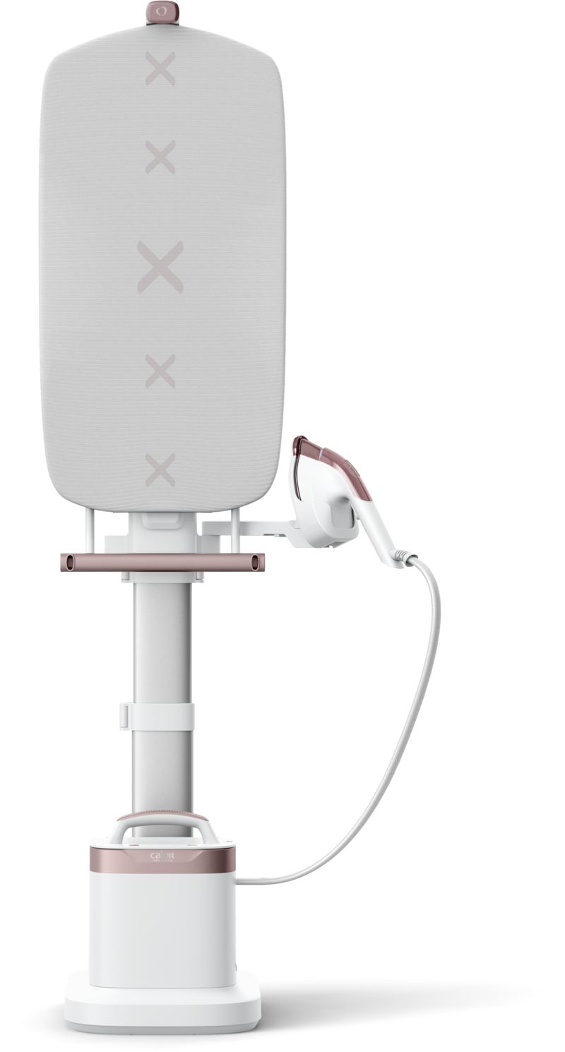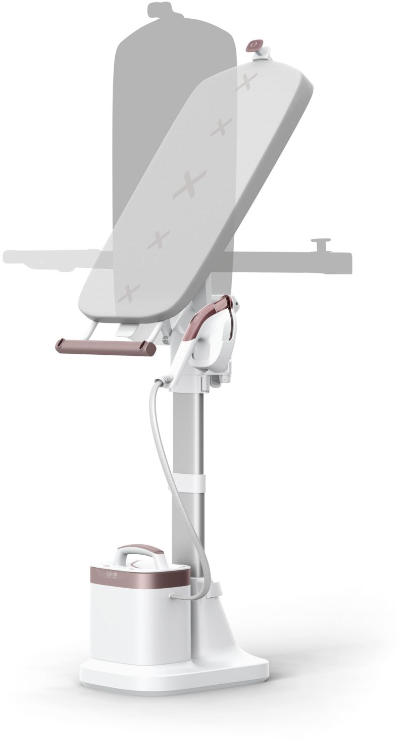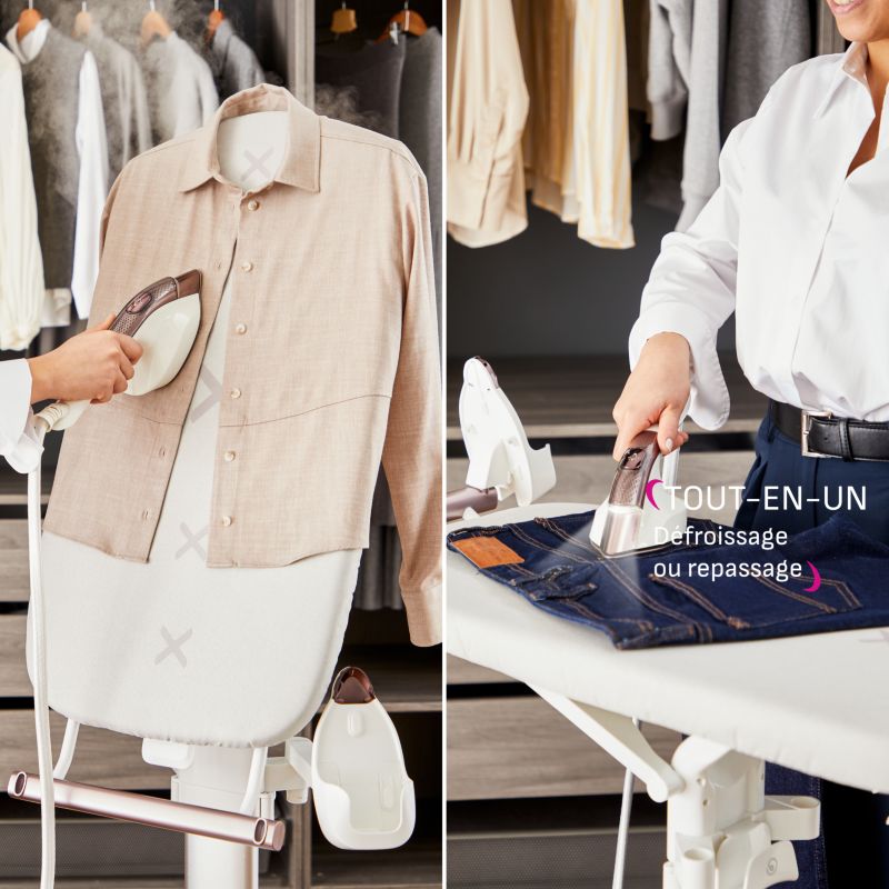 Le + : Sa planche 3 positions et sa lumière LED permettent de repasser et défroisser avec précision.
