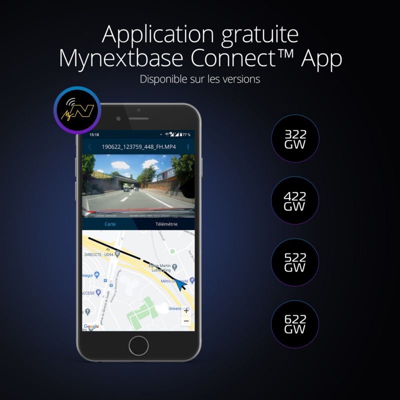 - Autre(s) : Mode stationnement intelligent / Stockage gratuit de vos vidéos dans le cloud sur mynextbase.com