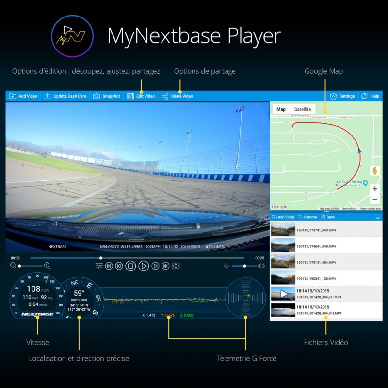 - Logiciel(s) vidéo : MyNextbase - Smartphone - PC - Online