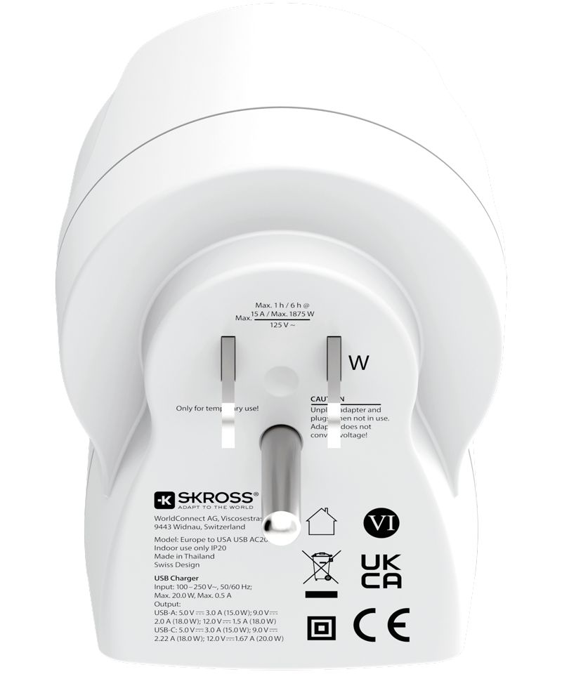 Adaptateur de voyage SKROSS Europe vers USA USB-A + USB-C (réf : 1235549)