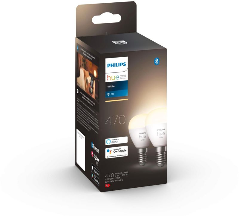 Ampoule LED connectée PHILIPS HUE E14 White Sphérique pack de 2 (réf : 1167763)