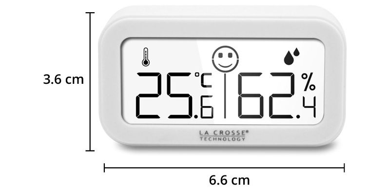Le + : Se pose sur un meuble ou s'accroche au mur, indicateur de confort avec un smiley