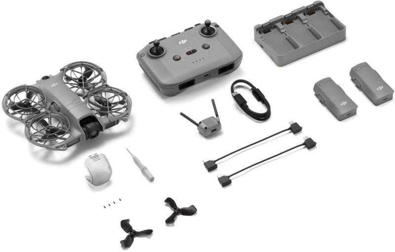- Contenu de contenu_du_carton : DJI RC-N3; Câble RC DJI RC-N (USB-C); Câble RC DJI RC-N (lightning); Batterie de Vol Intelligente; Station de recharge bidirectionnelle; Hélices de rechange (paire); Vis pour hélices; Tournevis; Protection d'hélices; Emetteur-Récepteur numérique; Protection Nacelle; Câble de données USB-C vers USB-C