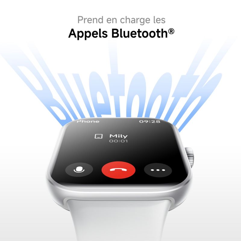 - Fonctionnalités : Appel et notification, Musique, Trouver son téléphone, Lampe torche, Météo, Haut parleur