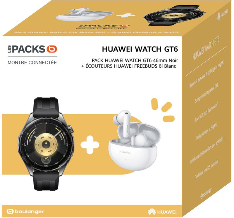 - Référence constructeur : Pack WatchGT6 46mm Noir+FreeBuds6I Blanc