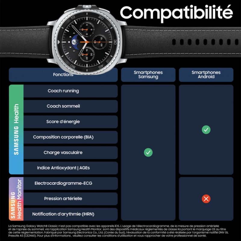 - Le + produit : Lunette rotative iconique IA sur Watch Galaxy AI Coach sommeil individualisé Coach running personnel Samsung Health