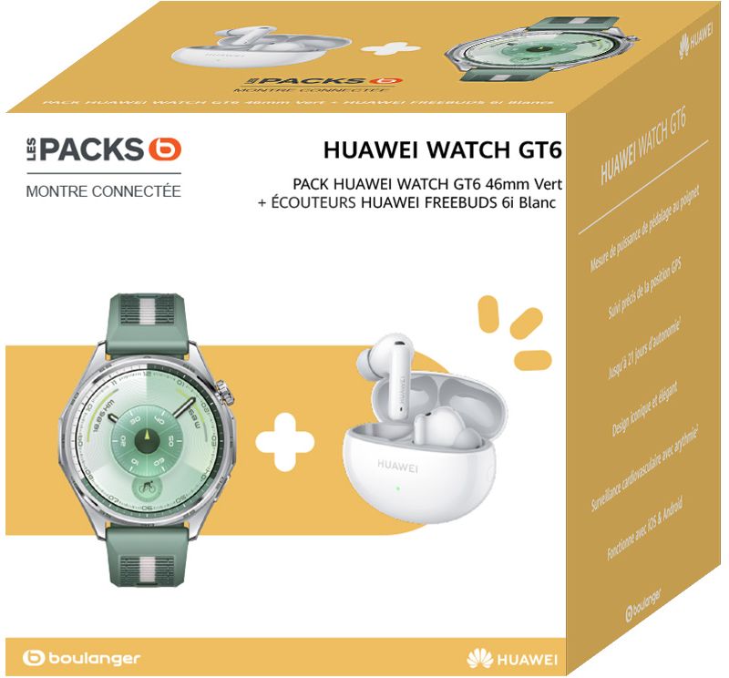 - Référence constructeur : Pack WatchGT6 46mm Vert+FreeBuds6I Blanc