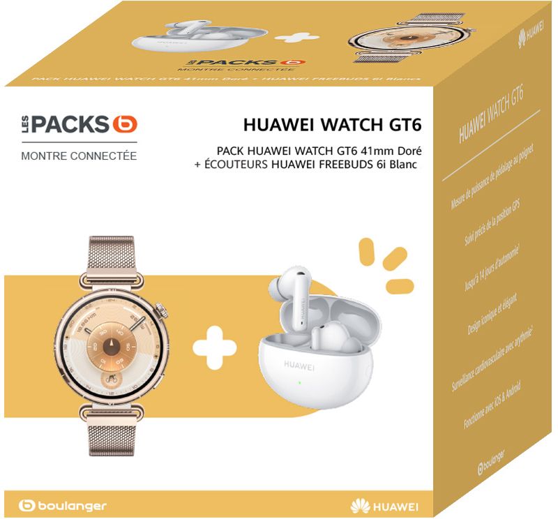 - Référence constructeur : Pack WatchGT6 41mm Doré+FreeBuds6I Blanc