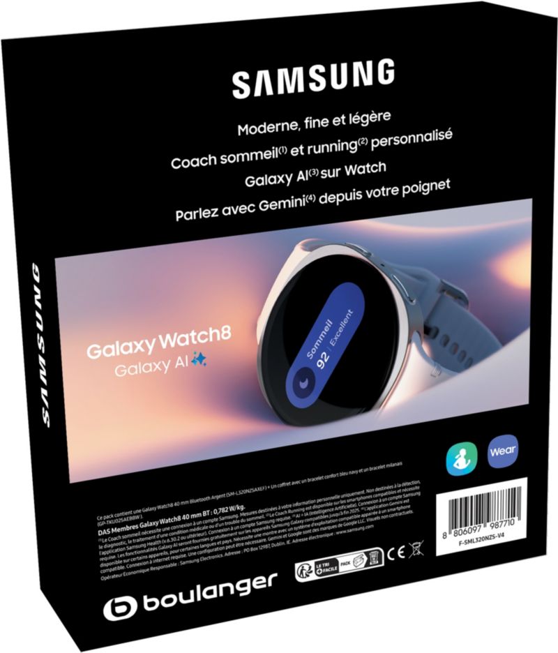 - Référence constructeur : Pack Galaxy Watch8 40mmBT+2 Bracelets