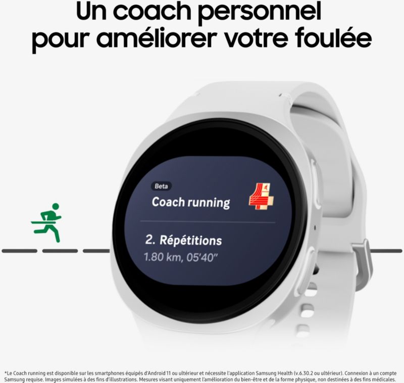 - Le + produit : Moderne, fine et légère Coach running personnel Coach sommeil individualisé IA sur Watch Galaxy AI Samsung Health