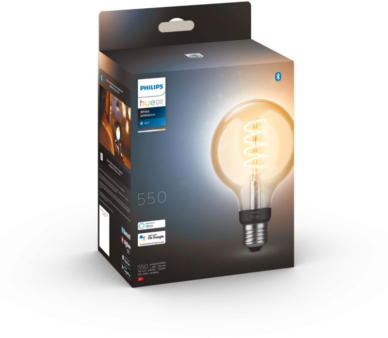Ampoule LED connectée PHILIPS HUE White Ambiance E27 7W Globe Filament (réf : 1168473)