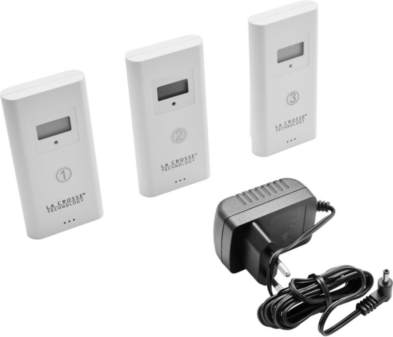 - Livré avec : Notice, Transmetteur, Capteur Thermo-hygrométrique, Sonde supplémentaire, Adapteur secteur