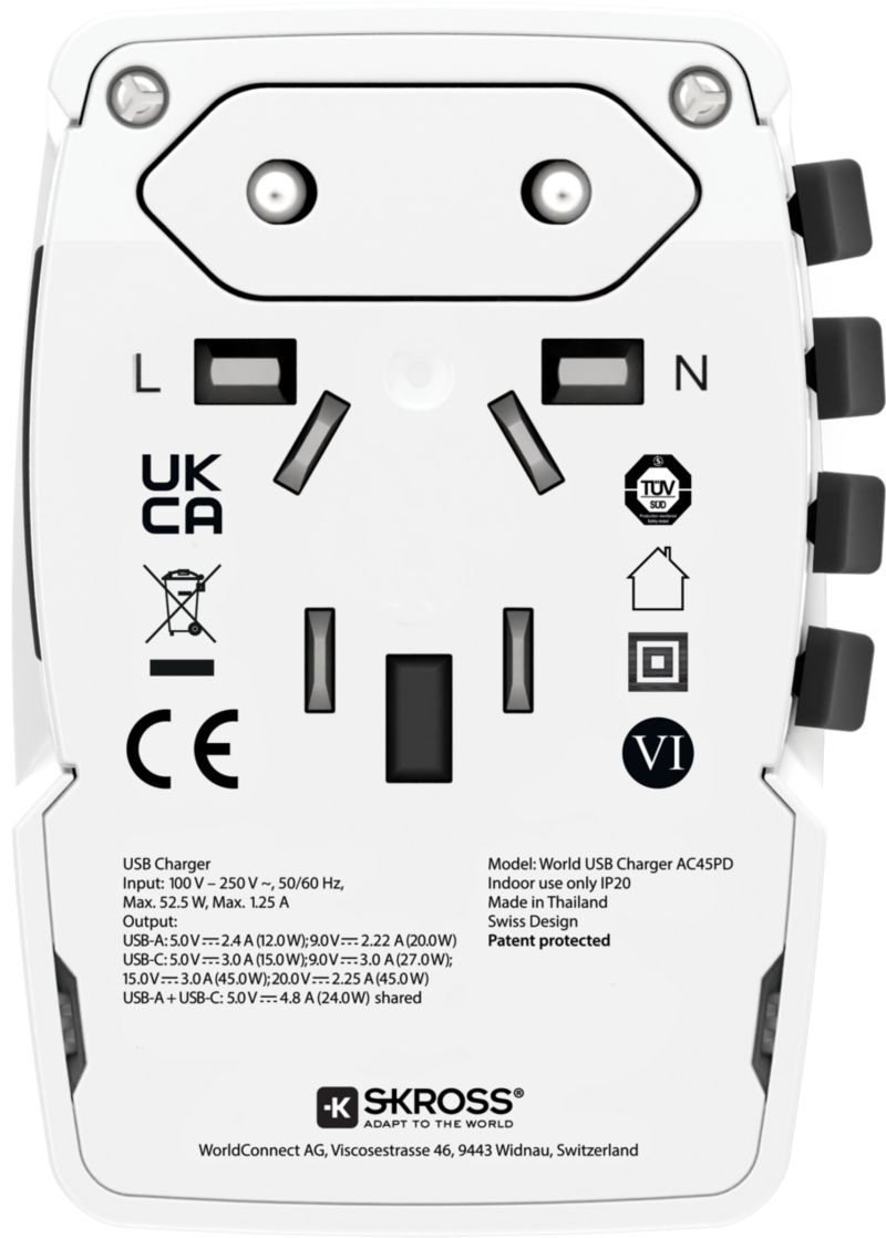 Adaptateur de voyage SKROSS chargeur monde 45 W + cable (réf : 1204416)