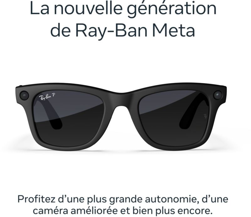 Lunettes connectées META Ray-Ban Wayfarer (Gen 2) - Noir mat, Verres dégradé graphite polarisés (réf : 1229547)