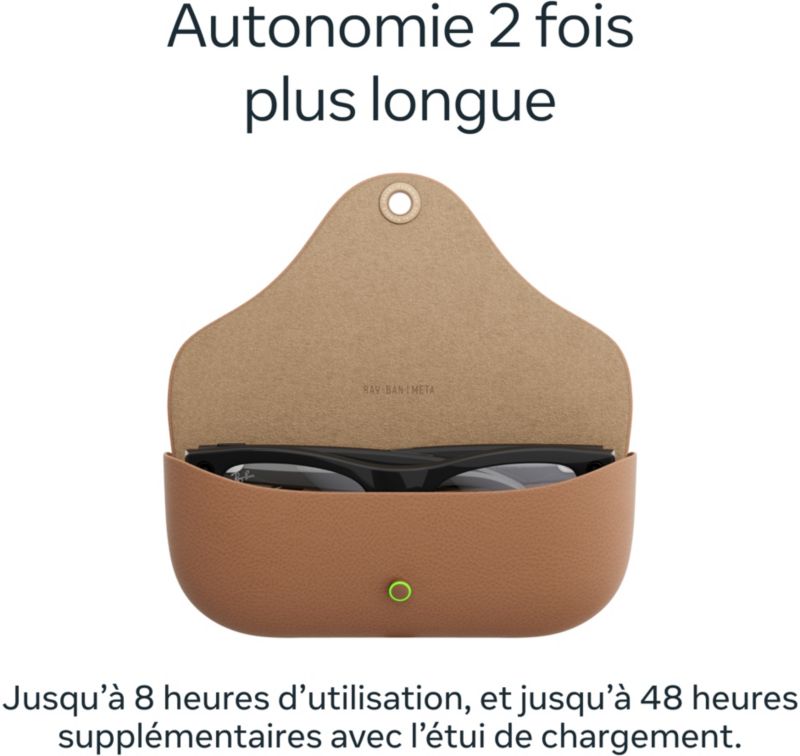 - Autonomie lunettes avec boitier : Jusqu'à 48 heures