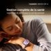 - Bien-être et santé : Suivi et analyse du sommeil, Suivi d'activité sportif, Distance parcourue, Calcul des calories brulées, Fréquence respiratoire, Santé féminine