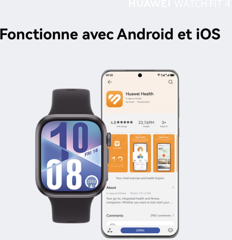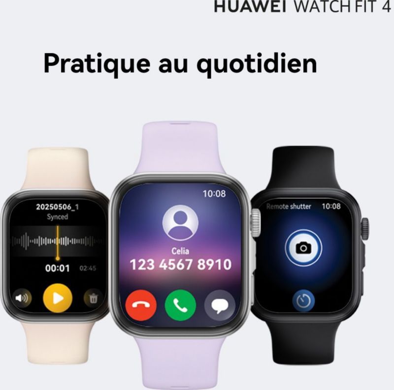 - Fonctionnalités : Appel et notification, Paiement sans contact, Musique, Trouver son téléphone, Météo
