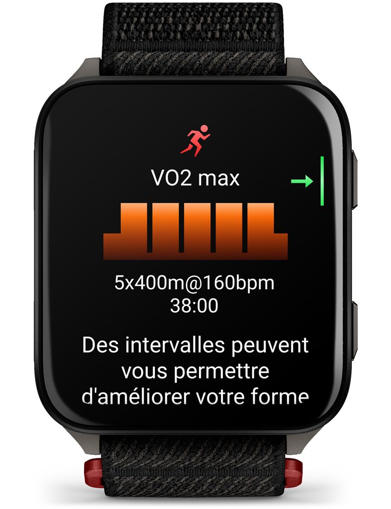 - Capteurs compatibles : Accéléromètre, Baromètre, GPS, GLONASS, GALILEO, Oxymètre, Altimètre, ECG, Boussole, Gyroscope, Luminosité ambiante