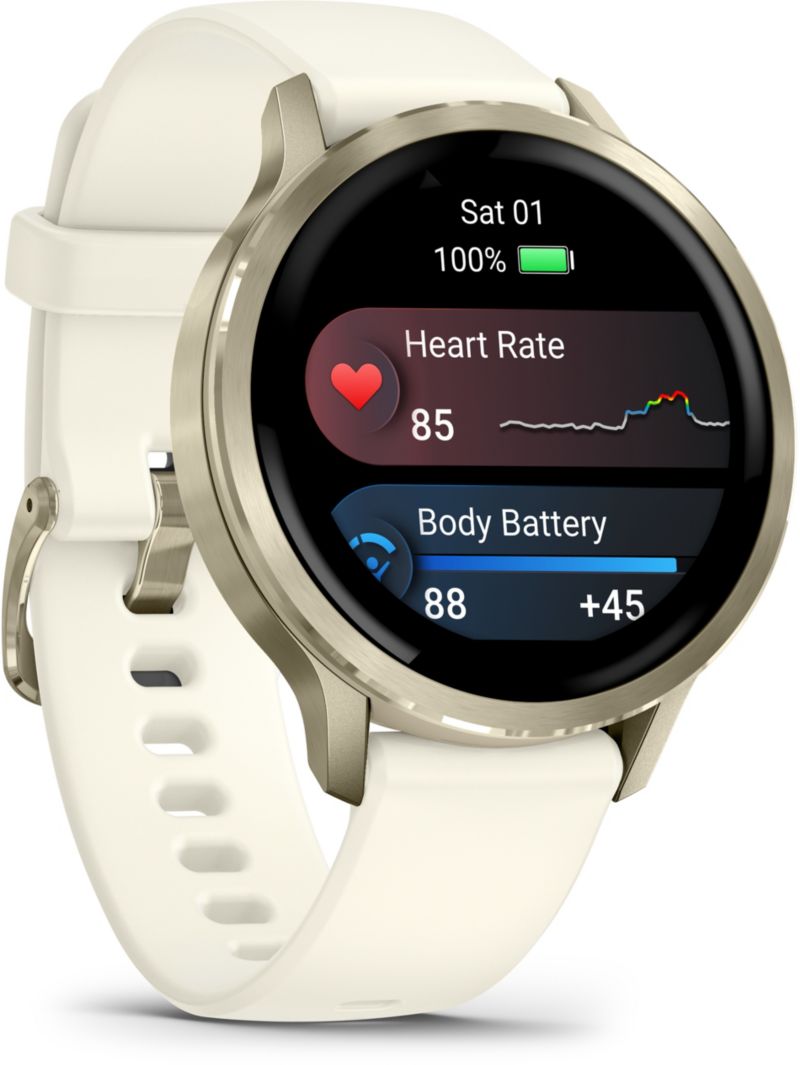 Montre sport GARMIN Venu 4 Beige/Lunar Or Silicone ivoir41mm (réf : 1229596)