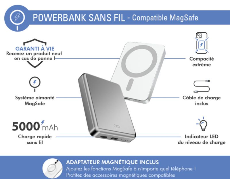 - Référence constructeur : 5000mAh MagSafe 15W argent