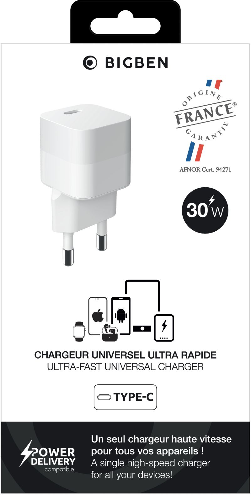 BIGBEN Chargeur universel ultra rapide 30W USB-C PowerDelivery GaN Recyclé (réf : 1220052)