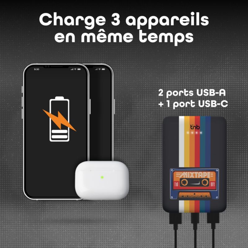 - Modèle(s) compatible(s) : 2 ports de charge : 1x USB-A + 1x USB-C
