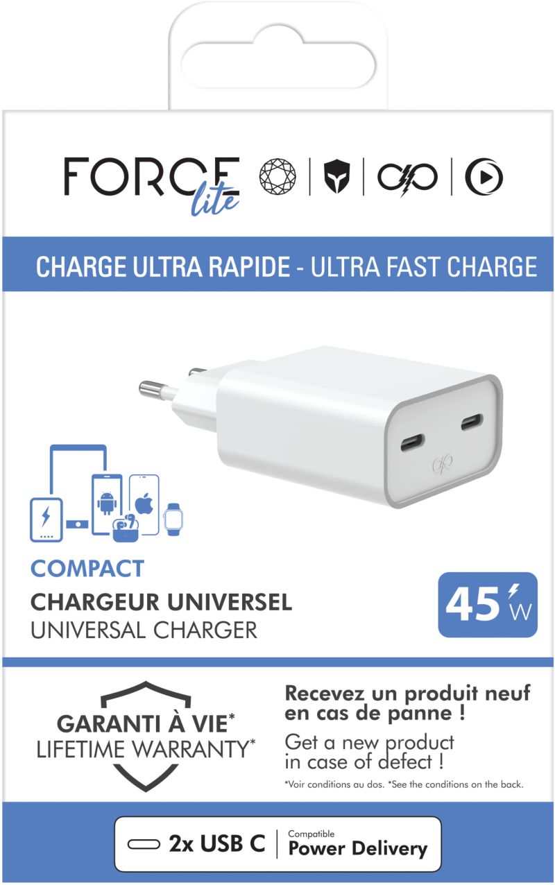 Chargeur FORCE POWER 2x USB-C 45W Recyclé Blanc (réf : 1187695)