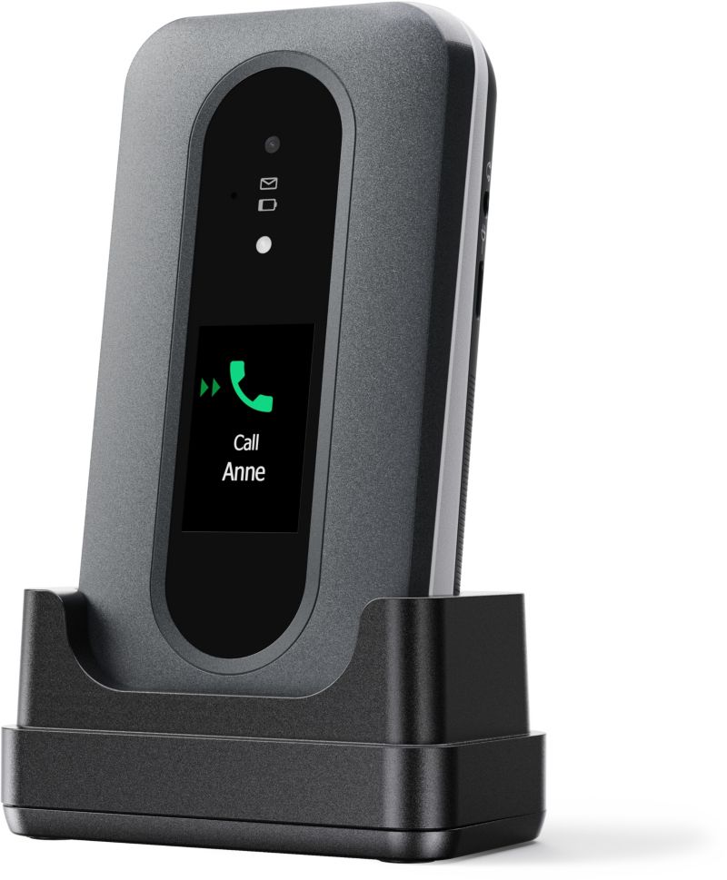 - Le + : Téléphone à clapet facile d'utilisation avec un grand écran , un écran externe affichant l'heure ou le nom de l'appelant, des menus simples, des touches espacées et contrastées , un son clair et puissant, compatible avec les appareils auditifs et une touche d'assistance en cas d'urgence.