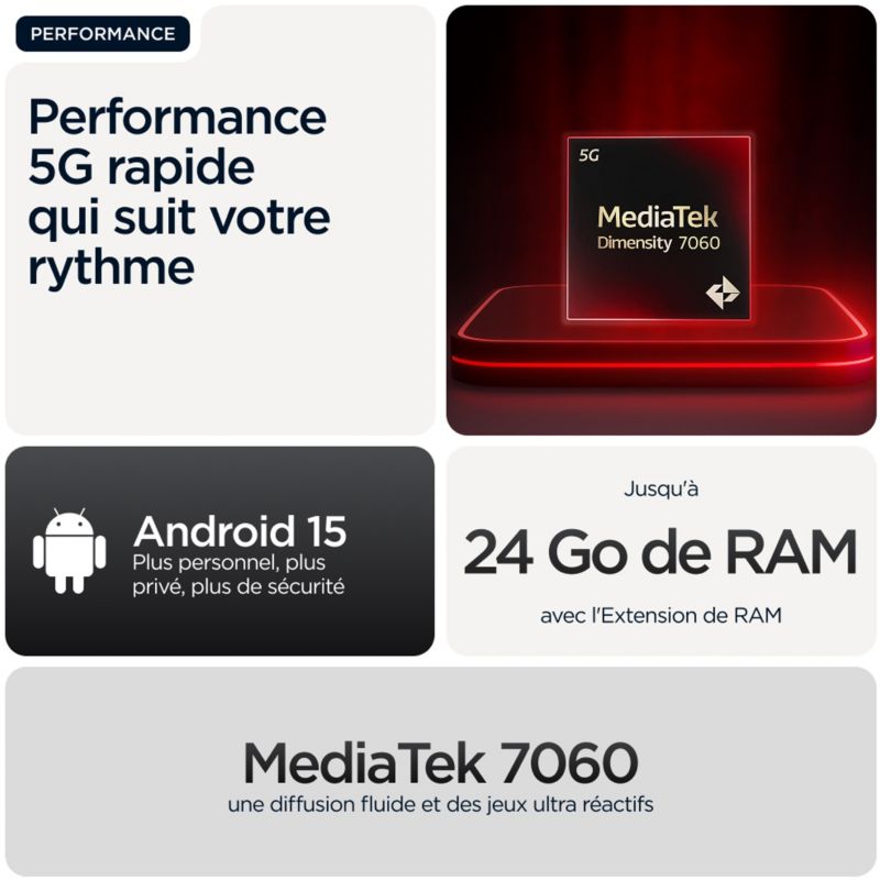 - Autre(s) accessoire(s) fourni(s) : Coque de protection Câble USB type-A vers USB type-C Outil de retrait de la carte SIM