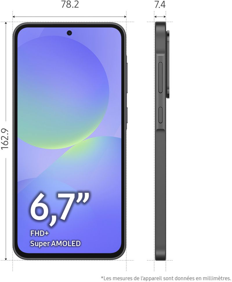 - Taille de l'écran (diagonale, en pouces) : 6,7" soit 17 cm