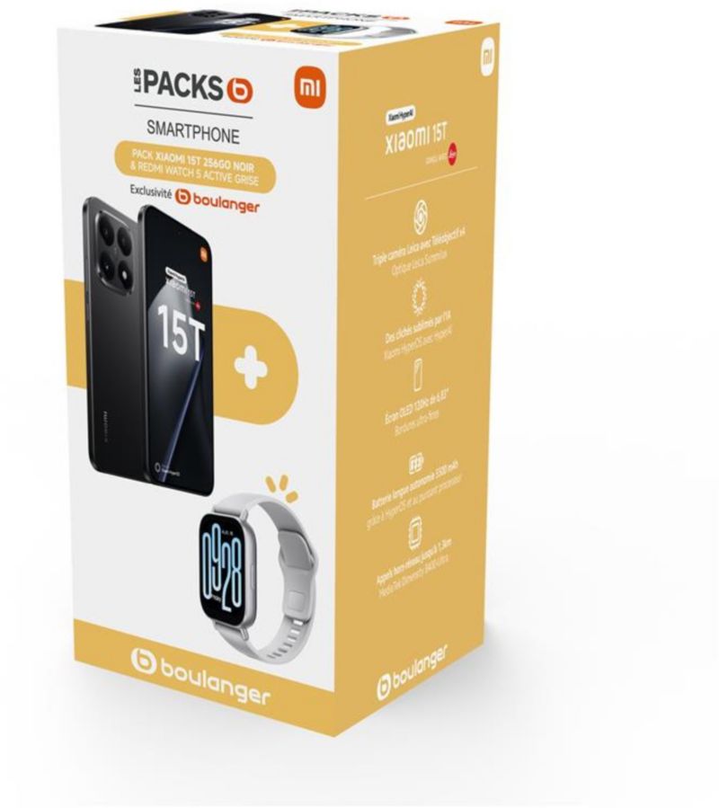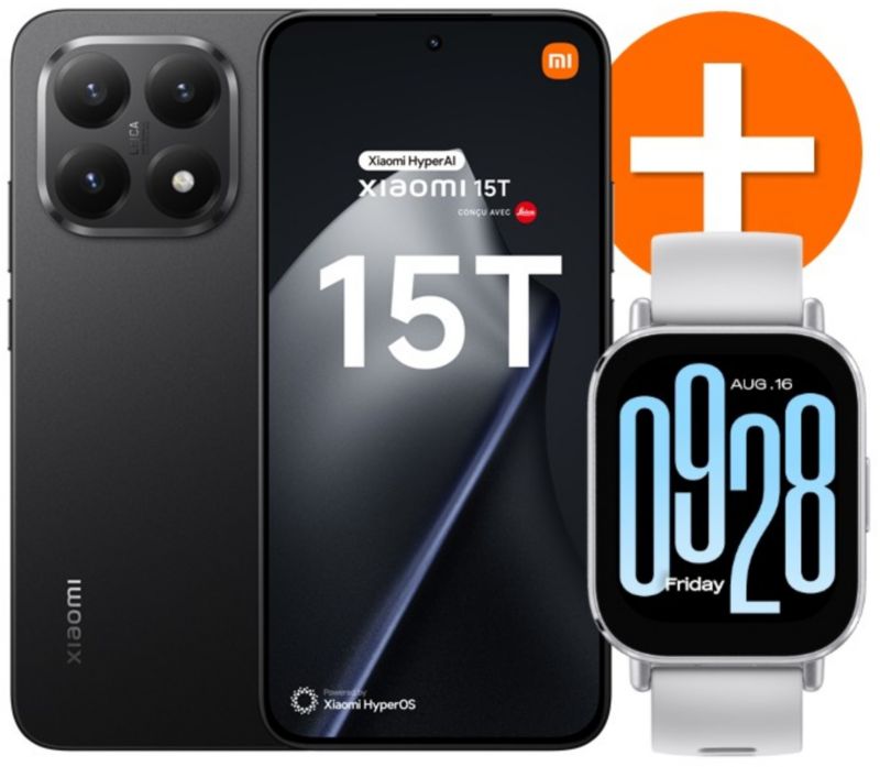Smartphone XIAOMI Pack 15T Noir 256Go 5G+RedmWatch5 Active (réf : 1233716)