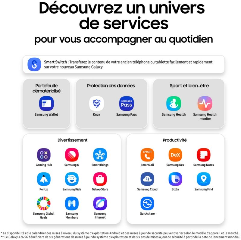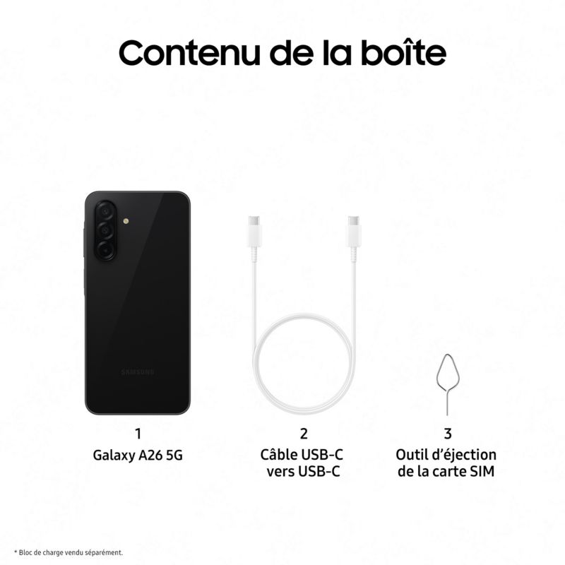 Smartphone SAMSUNG Pack A26 Noir 128Go + Powerbank (réf : 1236096)