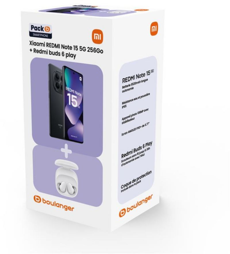 Smartphone XIAOMI Pack Redmi Note 15 256Go 5G + Coque + Buds6 Play (réf : 1236202)
