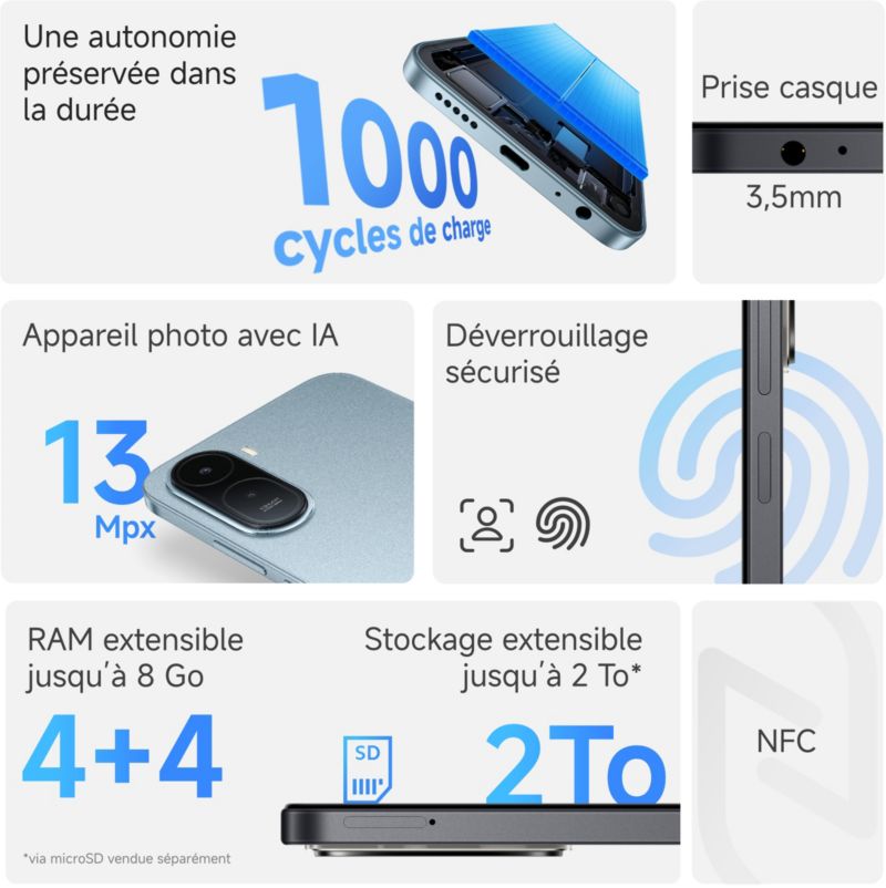 - Nombre de SIM : 2 SIM + 1 Micro SD