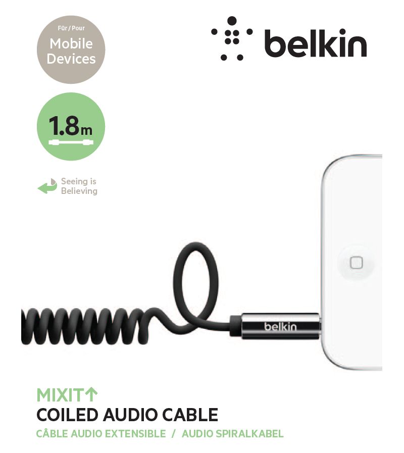 Adaptateur Jack BELKIN Jack 3.5mm spirale noir - 1M80 (réf : 284091)